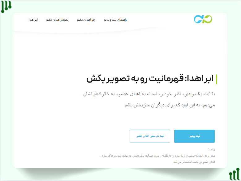- ثبتنام در این انجمن هیچ الزام قانونی برای اهدای عضو ایجاد نمیکند، بلکه نشانهی رضایت و نیت خیر شماست.
