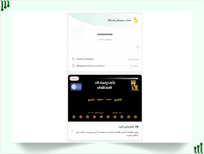 - برای در خواست ارسال کارت فیزیکی گزینه فعالسازی کارت را انتخاب کنید.