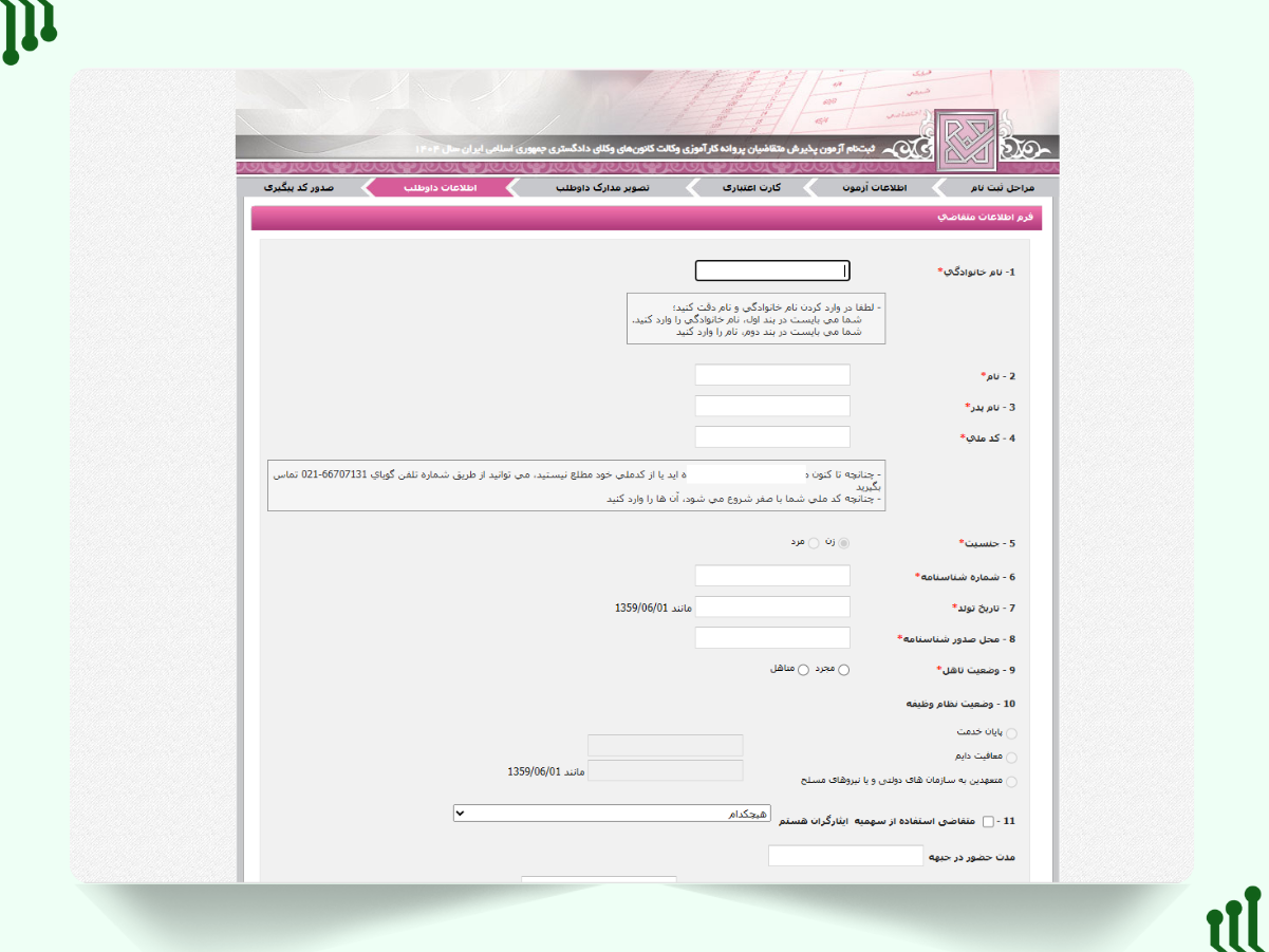 🧩 برای آشنایی کامل با مراحل ثبتنام آزمون کارشناسان رسمی دادگستری، میتوانید راهنمای گامبهگام این فرآیند را در بخش آموزشهای تخصصی مطالعه فرمایید: